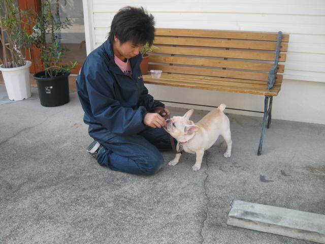 2人にとって色々なもの(車、自転車、バイク、通行人、風・・・など)に慣れていくのに最も適している時期ですので、ロビーから、あるいはお外の駐車場に出て、色々なものを見た瞬間におやつをあげます^^