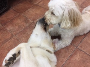 お店の看板わんこ、なつちゃんととっても仲良しなもこくんは