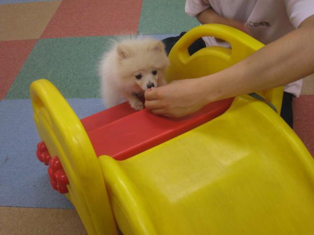 滑り台にもチャレンジです☆きなこちゃんよりも大きな段差に悪戦苦闘!!