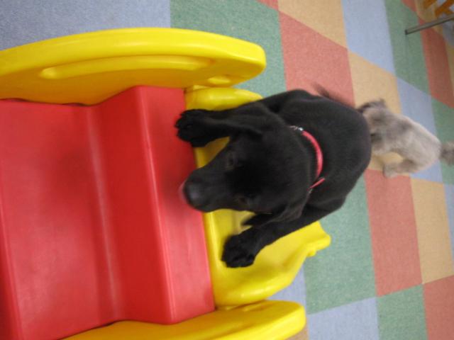 ロイスくんは、4回目の登園のときには自発的にお座りしていました^^