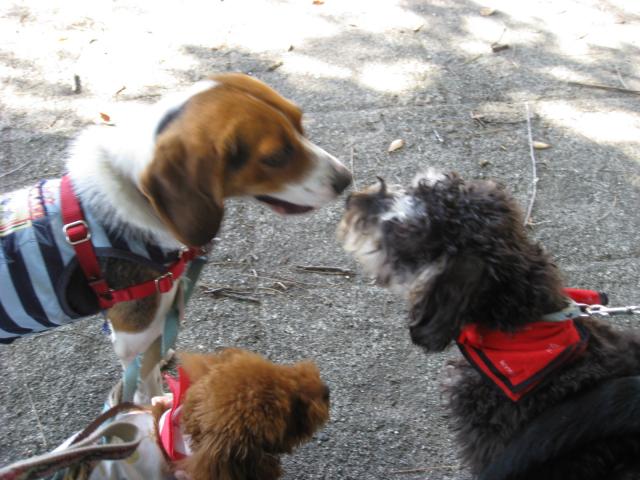 普段どんな他犬にも会わせられないようなダックスのお友達が、遠足では少し友好的になりました^^