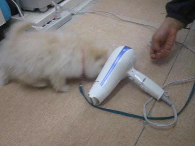 これから、トリミングに行くと思うので、今のうちからドライヤーに慣れる練習もします。