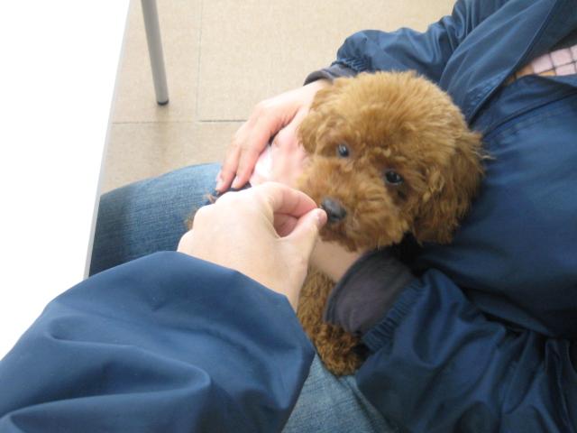 抱っこのときも、緊張するのでおやつを食べさせてあげて、緊張をおいしいもので緩和してあげます^^