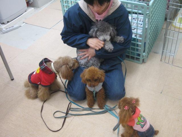 犬慣れは、大人しく、きちんと挨拶の仕方を知っているお友達と少しずつ会わせてあげることにより、一緒にいることは全然大丈夫になり、最近では、同じトイプードルの男の子に片思いしている様子です^^