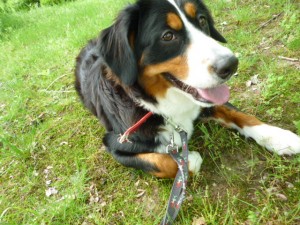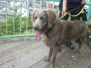 バーニーズのラッキーちゃんとワイマラナーのチビちゃんのお散歩レッスンに行きました。