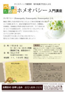 - 坂内祐美子先生によるペットのためのホメオパシー講座 開講! from 犬の幼稚園WANCOLABOわんこラボ | 幸せなドッグライフのためのコミュニケーションレッスン
