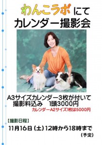 費用 : A3サイズのカレンダーが3枚付いて撮影料込みで1頭3,000円