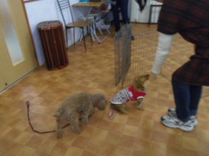 他犬慣れで興奮をしないことがテーマなので幼稚園に来ているお友達と同じ空間で練習をしていきます。