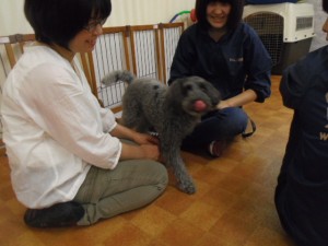 登園しているわんちゃんへ、アロママッサージを行っております。