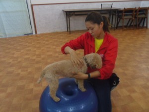 バランスボールを使った筋力アップは特にシニア犬には効果的です。