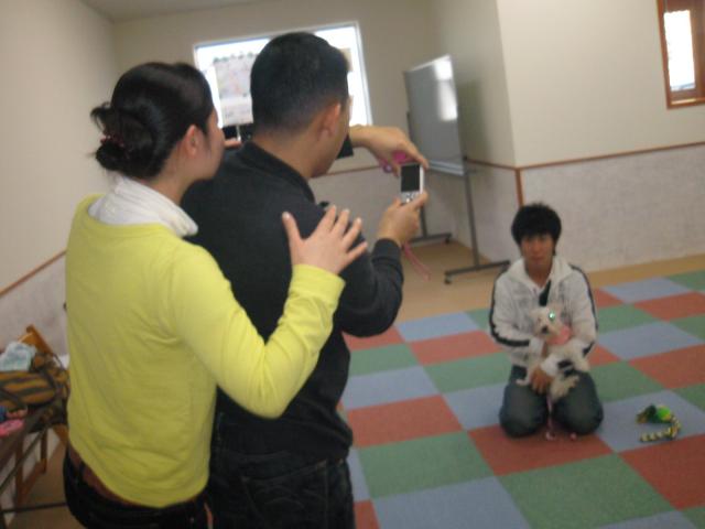 家族の方二人とインストラクターとスタッフでフラワーちゃんを囲み