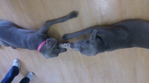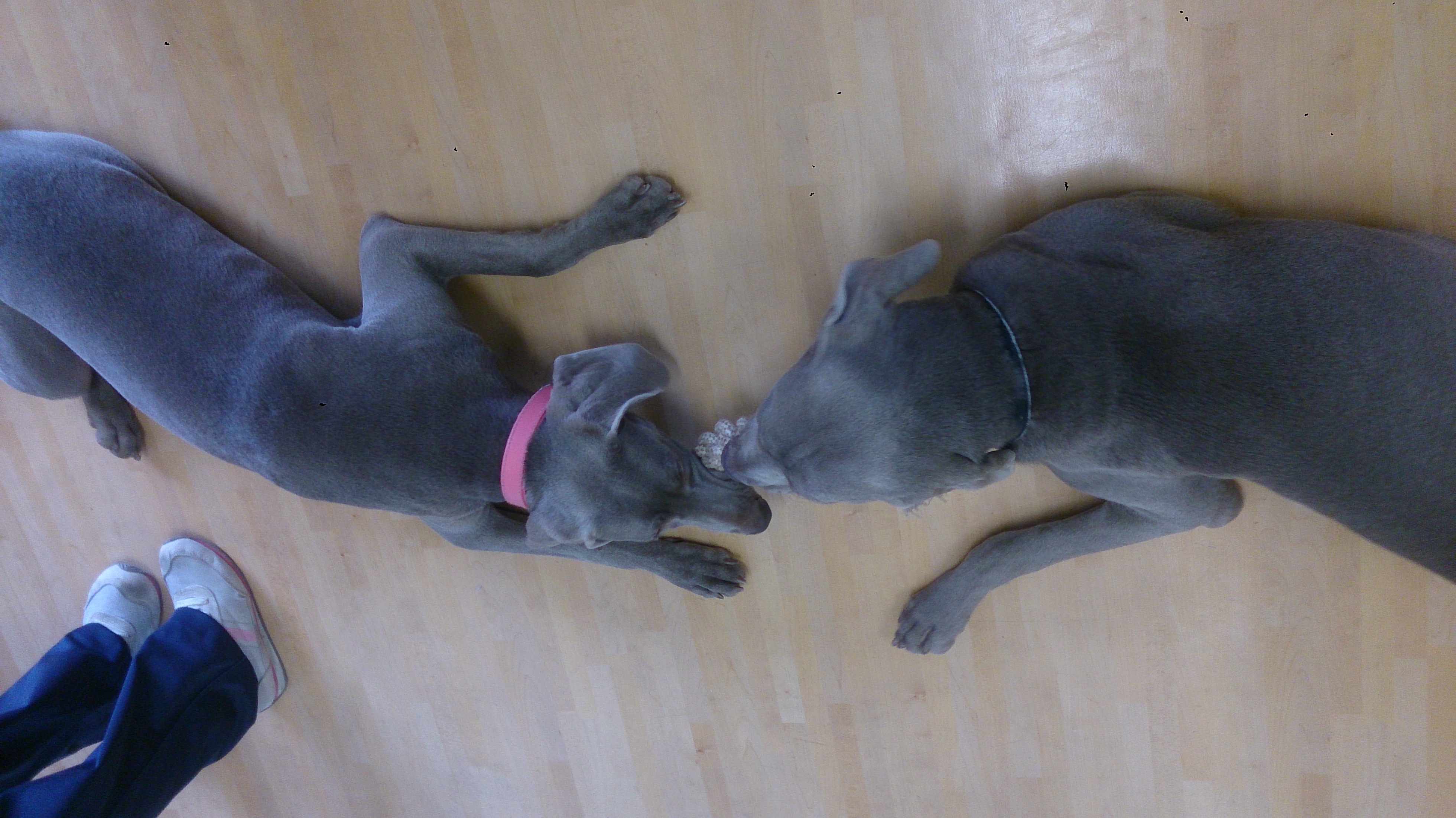 病院に到着すると、前回のクラスと受講していただいたワイマラナーの兄妹が遊びに来てくださっていました。