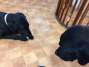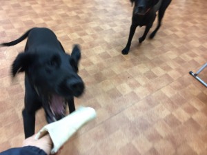 先生に新しいおもちゃを出してもらって一緒にがじがじ★