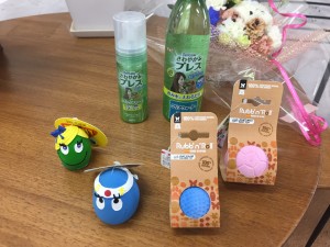 (おもちゃ、おやつ、グッズなどなどたくさん取り揃えています♪)